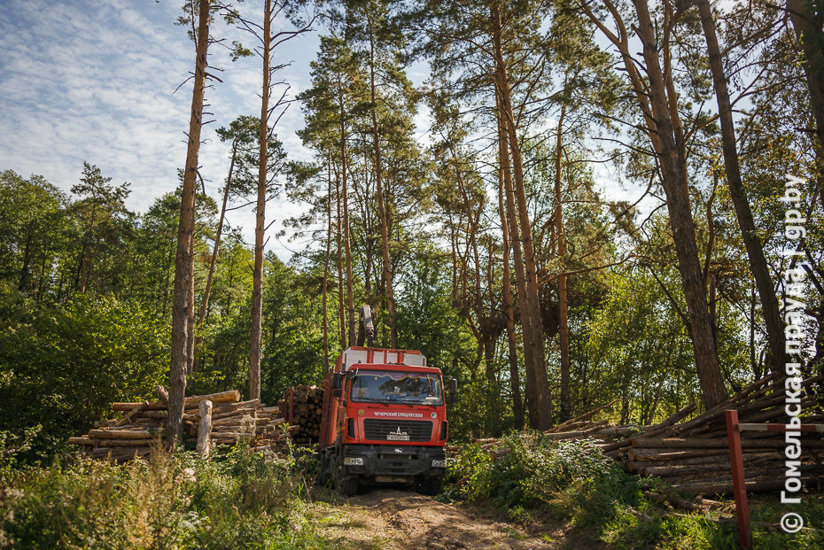 Мы посетили еще один из складов. Речь опять же не о помещении. Лесоводы называют так места в лесу, неподалеку от лесосек, где временно хранится древесина. Отсюда ее также вывозят, уже на промышленную переработку. Этим занят, например, водитель лесовоза с манипулятором Евгений Цикунов, с которым разговорились. Парень работает второй год, пошел по стопам отца, который тоже трудится в Чечерском спецлесхозе. Помнит прошлогодний ураган, натворивший бед. Тогда у Евгения прибавилось работы, пришлось помогать коллегам в Буда-Кошелевском, Мозырском районах. Но задач лесоводам всегда хватает, и сейчас водители на отвозке трудятся каждый день. Больше вывезем, замечает Цикунов, больше заработаем.