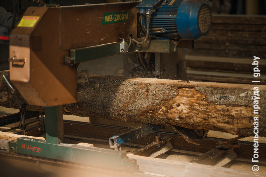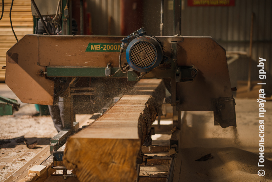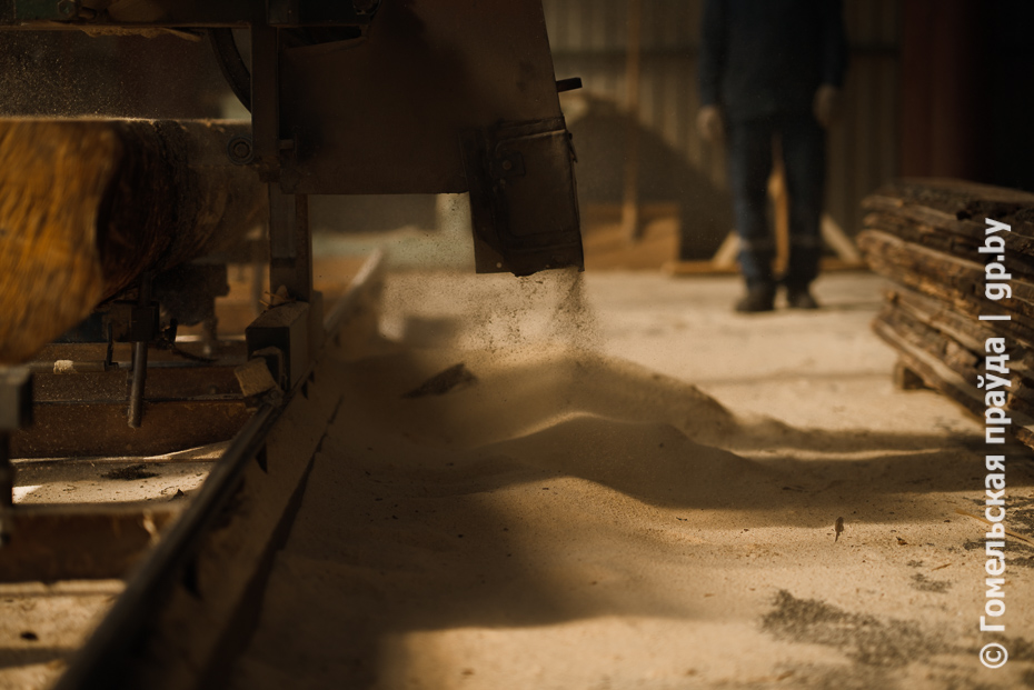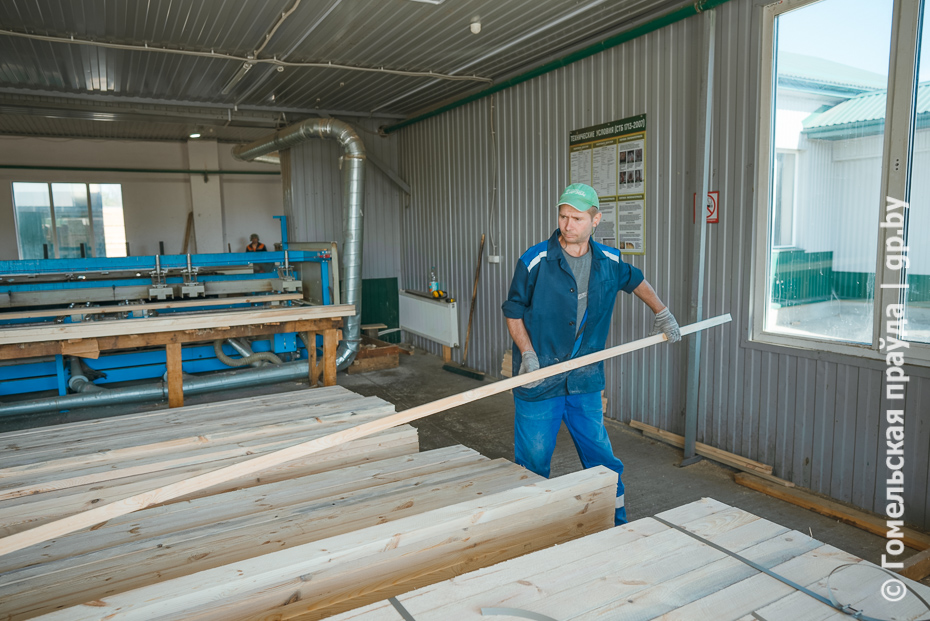 Финальная точка - цех переработки древесины лесхоза в деревне Красный Берег Чечерского района. Здесь работают в две смены, в каждой по 16 человек. За смену перерабатывают не менее 100 кубометров разной древесины, в том числе ветровальной. На выходе - пиломатериал обрезной. Весьма востребованная продукция на внутреннем и внешнем рынках.