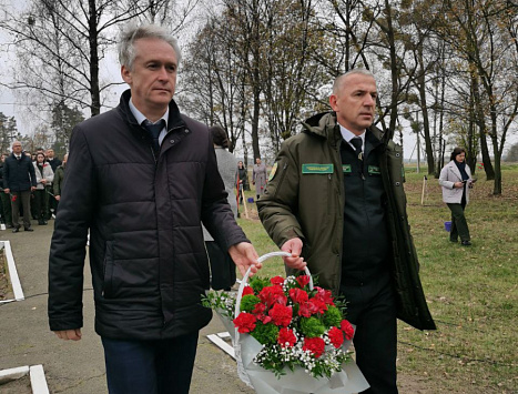 В течении дня ребята вместе с руководством Гомельского ГПЛХО, районного исполнительного комитета и Гомельской областной организации Белорусского профсоюза работников леса и природопользования посещали структурные подразделения Ельского лесхоза: погрузочно-разгрузочный пункт и Кочищанское лесничество, почтили память минутой молчания героев Великой Отечественной войны и возложили цветы к мемориалу, заложили памятную аллею.