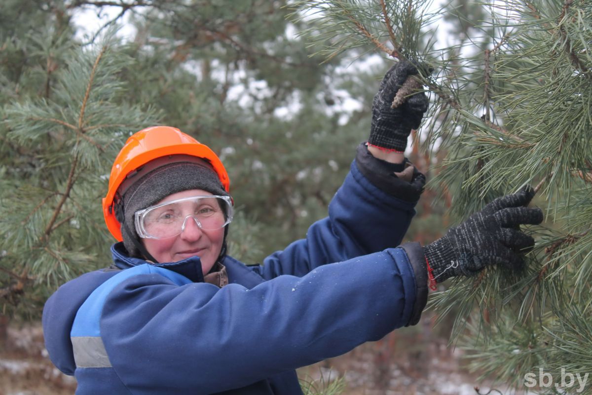 — На плантации проводится специальная обрезка деревьев, их обезвершинивание, формирование кроны… Все для максимального плодоношения на боковых ветках и удобства при сборе урожая. Поэтому с виду сосны вроде непрезентабельные, но по своим качественным параметрам, которые наследуют семена, отвечают максимальным требованиям. Деревья из таких семян будут высокие, с массивным стволом, пышной кроной. Кстати, шишки, которые собираем на плантации, называются селекционными, а те, которые заготавливаем на семена в обычном лесу, — нормальными. Работы сейчас ведутся везде, практически их завершаем. До марта закончим повсеместно. Результаты замечательные. У нас урожайность 4 балла из 5 возможных. Значит, будет надежный запас семян.