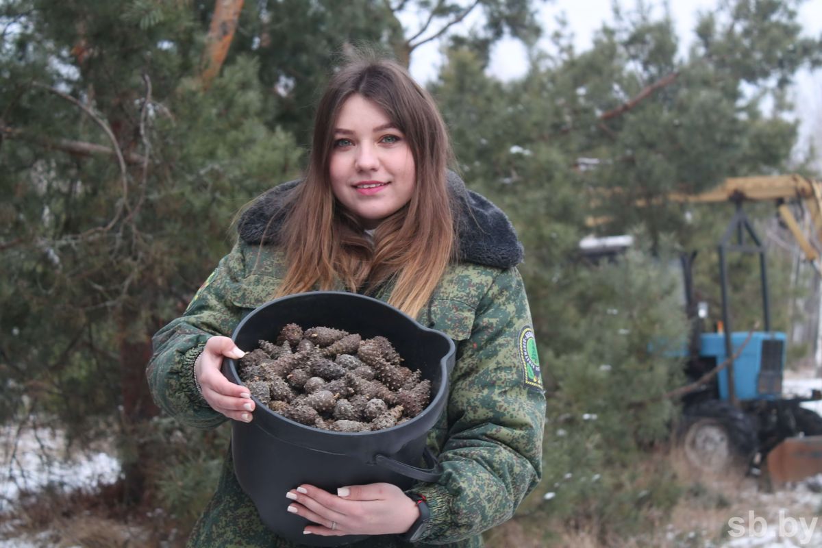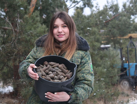 К слову, Дарья Хомец впервые участвует в столь масштабной уборочной. С начала февраля 23-летний специалист трудится в статусе инженера по лесовосстановлению и мелиорации Калинковичского лесхоза. До этого с 2021 года, после окончания колледжа в Гомеле, поработала мастером и помощником лесничего в местном Ужинецком лесничестве. Примечательно, что пошла по стопам отца, который трудится в лесном хозяйстве Ельского района… На прежних участках работы девушка уже имела дело со сбором урожая шишек, но только нормальных, в обычном лесу. Теперь совсем другой расклад. Дарья уточняет, что ныне входит в зону ее ответственности:
