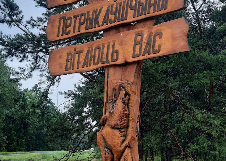 На 247 км автодороги М10 появился еще один яркий символ гостеприимства — арт-объект, который теплым приветствием встречает всех, кто въезжает на территорию лесного фонда Петриковского лесхоза.