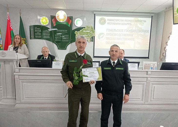Сегодня в рамках проведения заседания коллегии Гомельского ГПЛХО Генеральный директор обьединения Игорь Николаевич Дегтярик вручил награды Министерства лесного хозяйства Республики Беларусь по итогам работы за год.