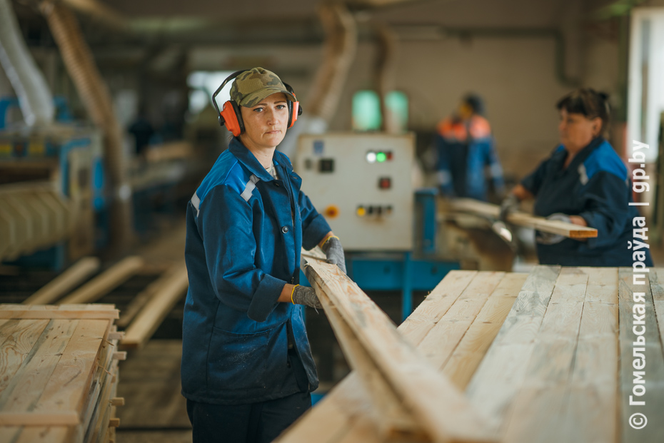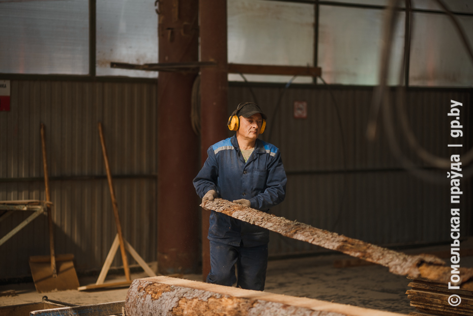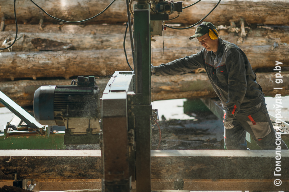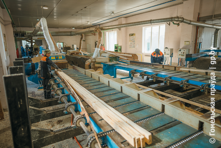Финальная точка - цех переработки древесины лесхоза в деревне Красный Берег Чечерского района. Здесь работают в две смены, в каждой по 16 человек. За смену перерабатывают не менее 100 кубометров разной древесины, в том числе ветровальной. На выходе - пиломатериал обрезной. Весьма востребованная продукция на внутреннем и внешнем рынках.