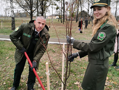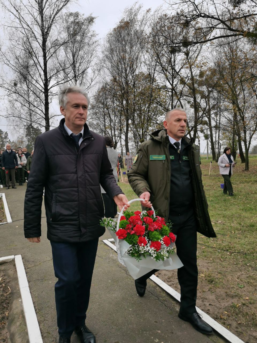 В течении дня ребята вместе с руководством Гомельского ГПЛХО, районного исполнительного комитета и Гомельской областной организации Белорусского профсоюза работников леса и природопользования посещали структурные подразделения Ельского лесхоза: погрузочно-разгрузочный пункт и Кочищанское лесничество, почтили память минутой молчания героев Великой Отечественной войны и возложили цветы к мемориалу, заложили памятную аллею.