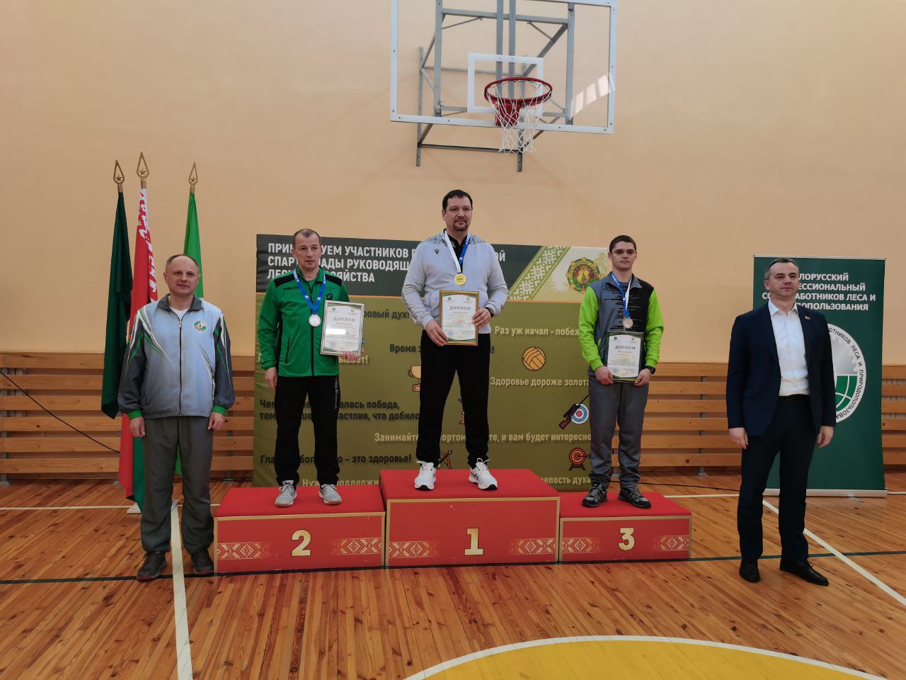 Первое место в командном зачёте в стрельбе из нарезного оружия завоевали Директор Лоевского лесхоза Пунтус Александр Владимирович и Директор Речицкого опытного лесхоза Глусцов Дмитрий Александрович